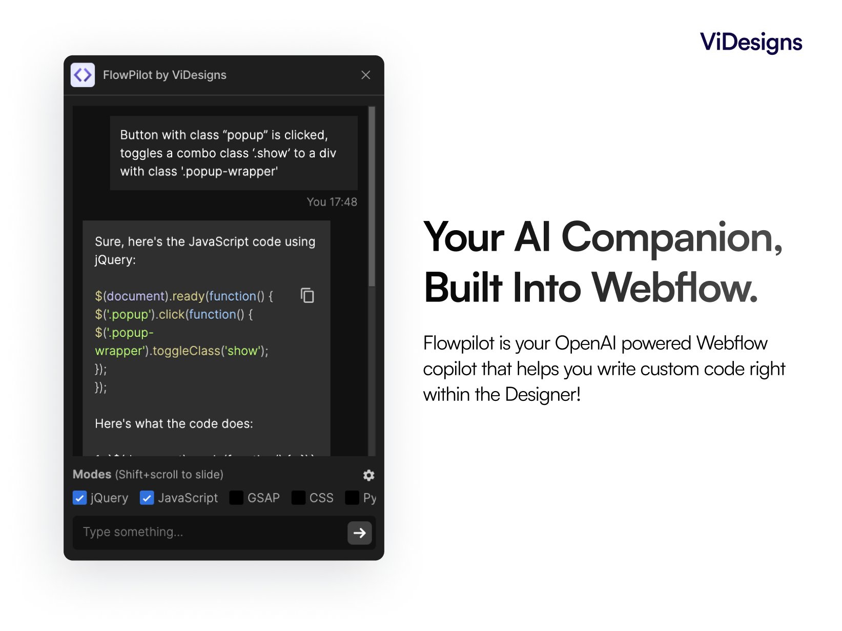 An OpenAI powered chatbot right within the designer